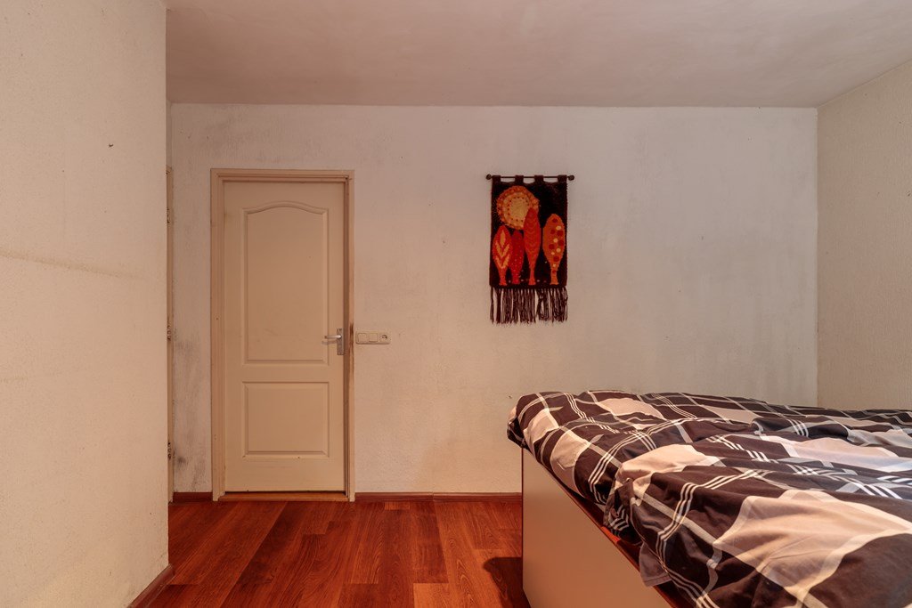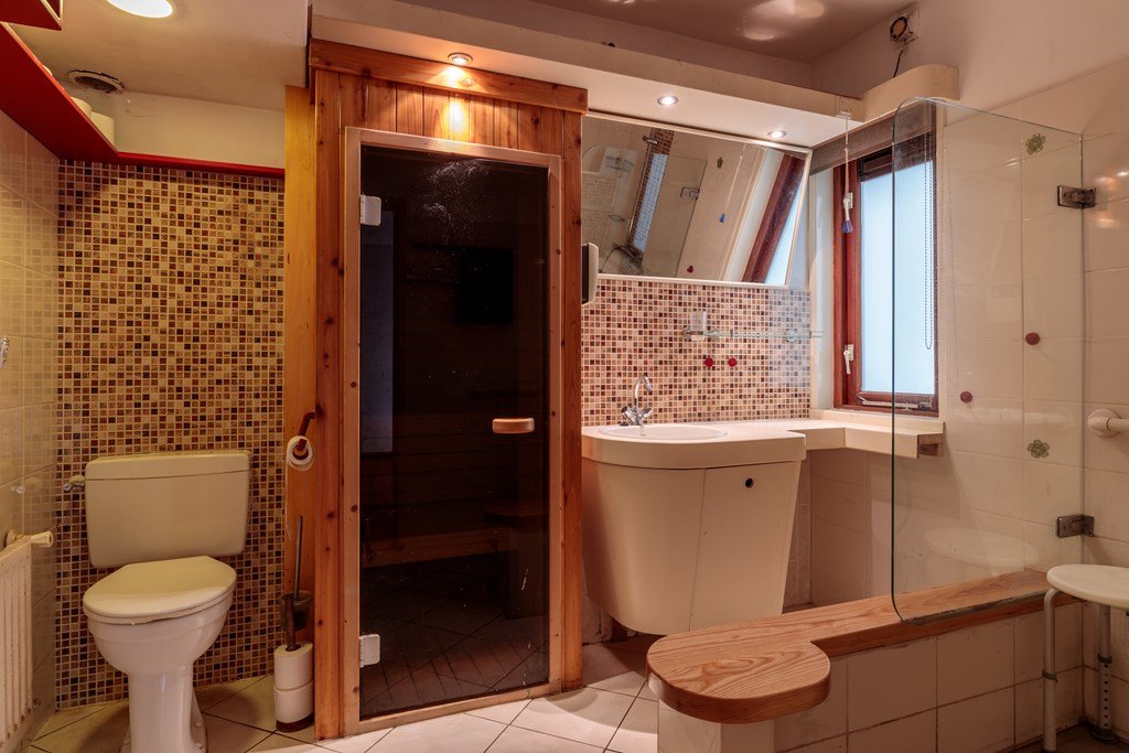 De lichte woonkamer heeft een royale indeling en een schuifpui naar de tuin. Grenzend bevindt zich de keuken met toegang tot de bijkeuken met wateraansluiting en een deur naar buiten. De keuken geeft tevens toegang tot de hoofdslaapkamer met aangrenzende badkamer. Deze badkamer is voorzien van een douche, badmeubel en sauna.