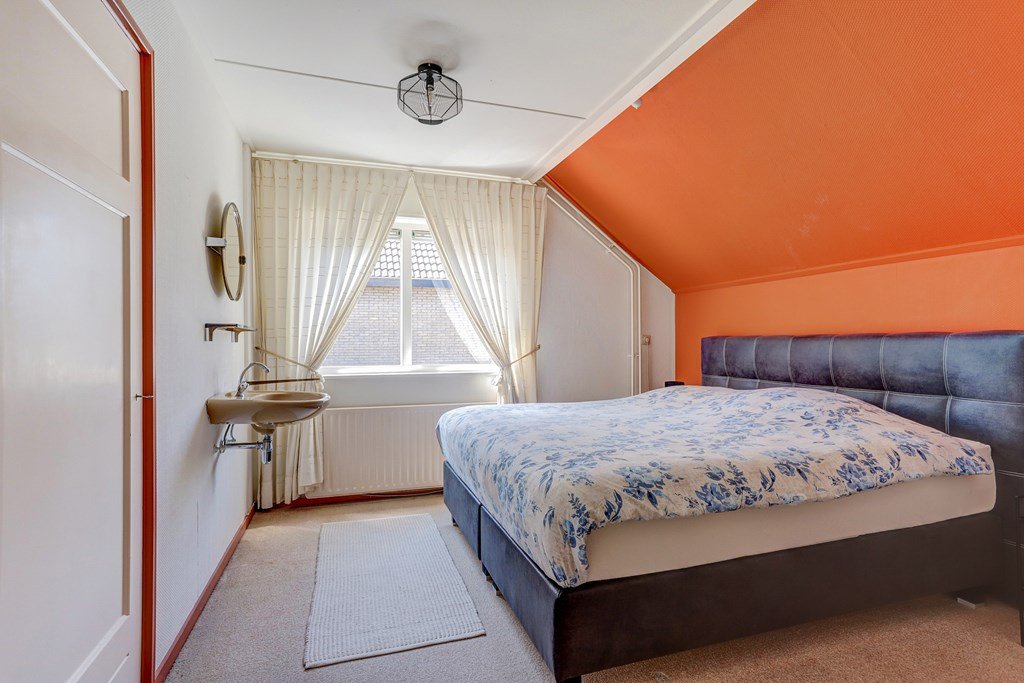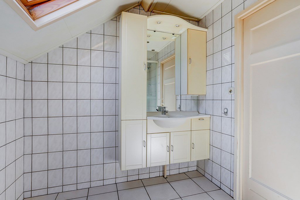 De overloop met dubbele dakkapel geeft toegang tot het dakterras. Op deze verdieping bevinden zich de badkamer met douche en wastafelmeubel en vier slaapkamers, allen voorzien van vaste kasten.