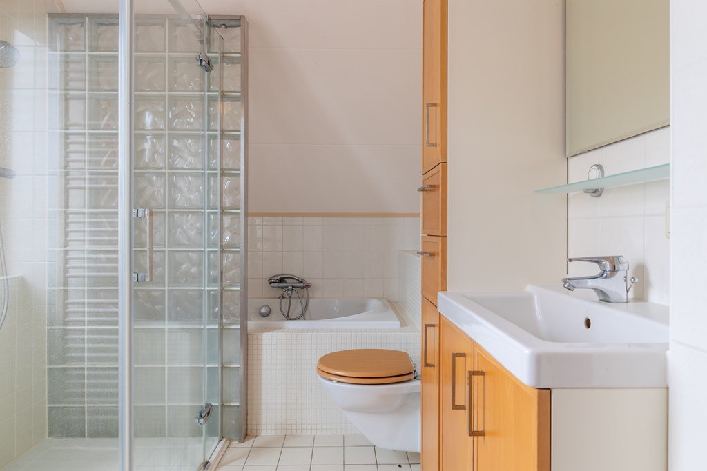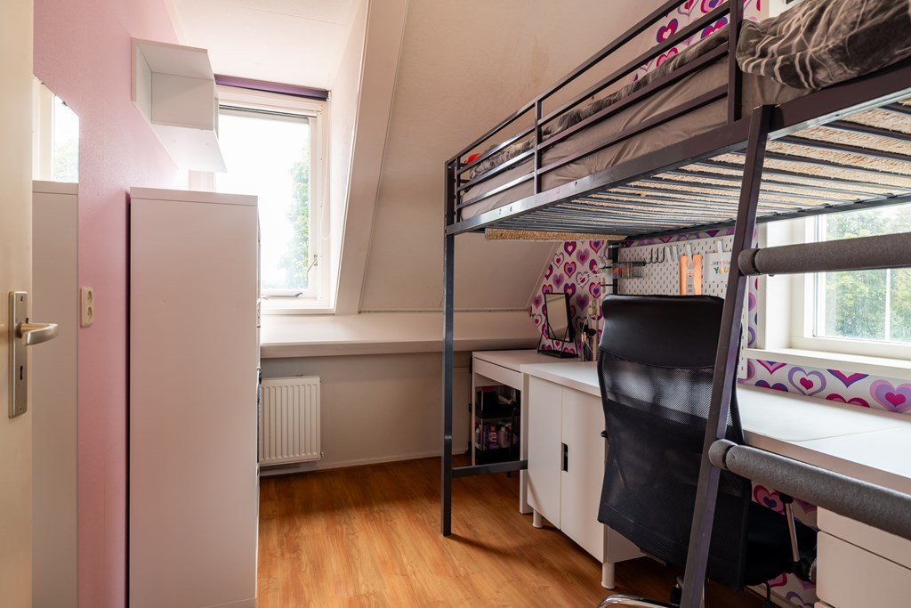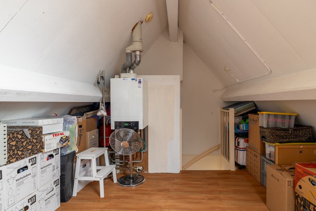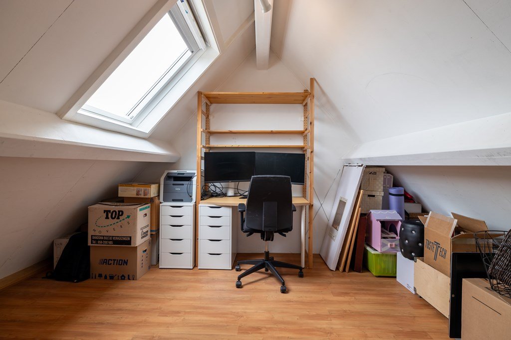 Op de eerste verdieping zijn drie slaapkamers te vinden, samen met de badkamer die is ingericht met ligbad, douche, wastafel en toilet. De tweede verdieping biedt extra bergruimte en de mogelijkheid om een vierde slaapkamer te realiseren.