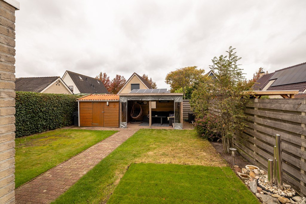 • Tuin met berging en overkapping