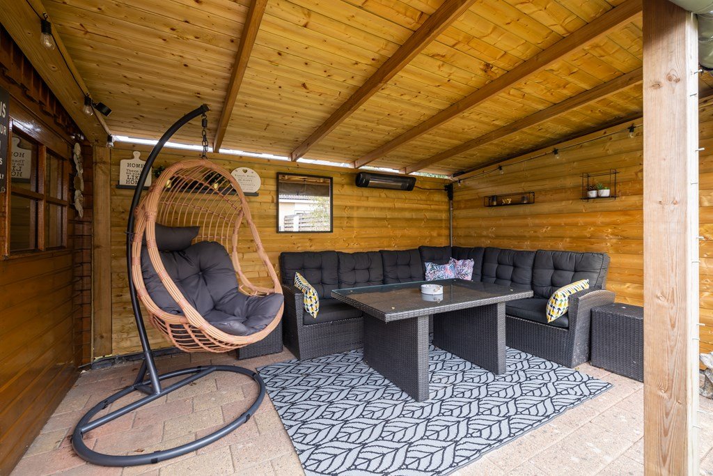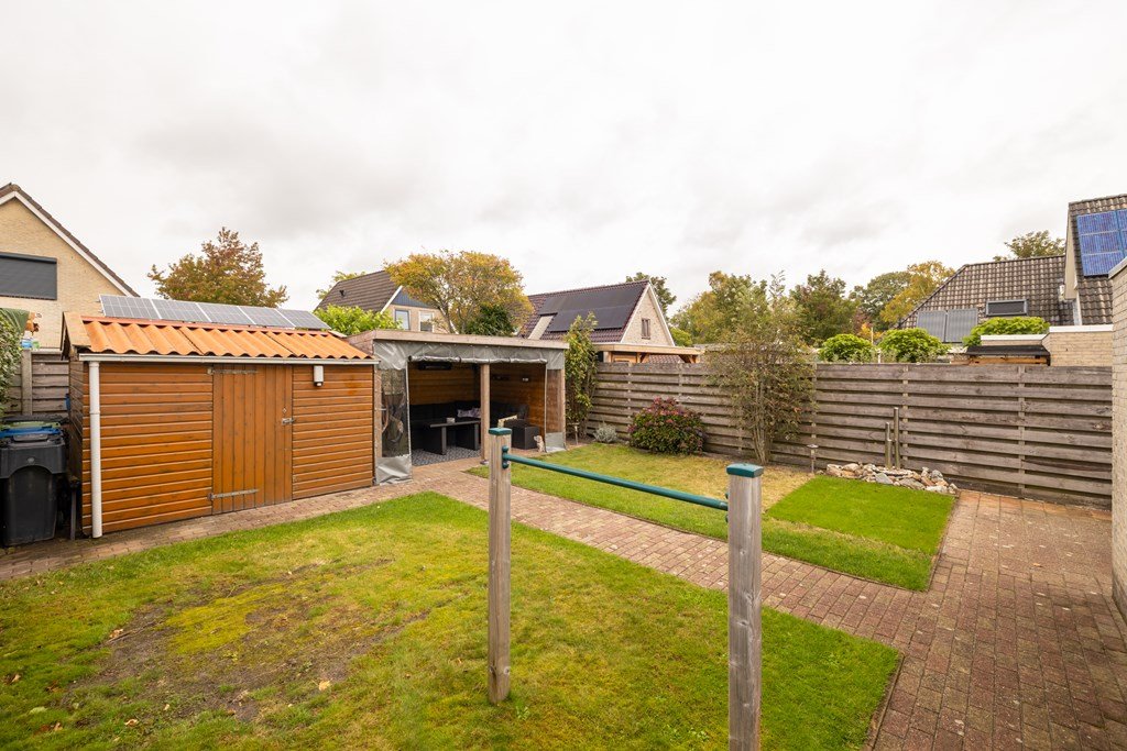 De tuin is gericht op het noordwesten en beschikt over een berging en een gezellige overkapping waar u tijdens de lange zomeravonden heerlijk kunt ontspannen.