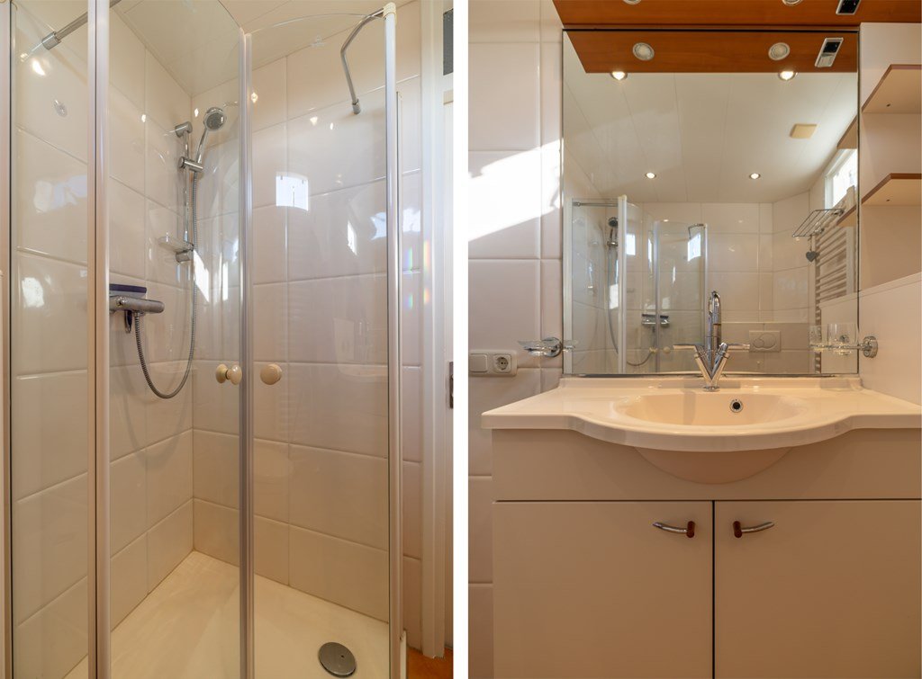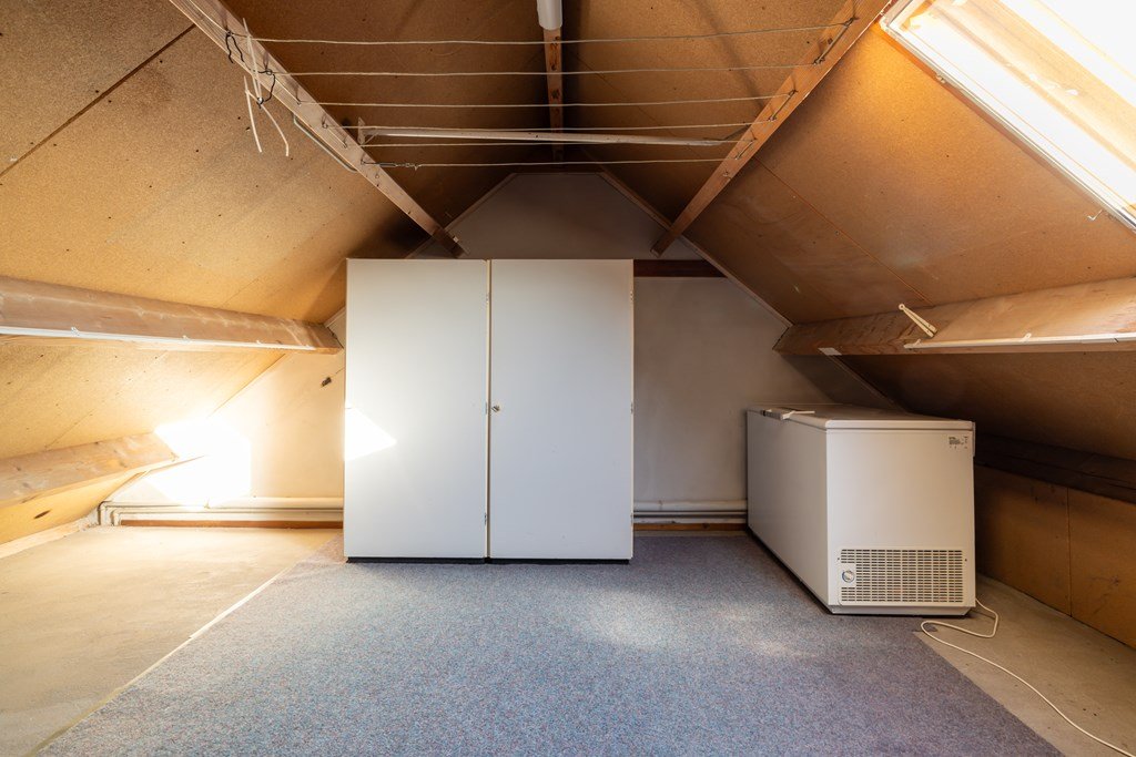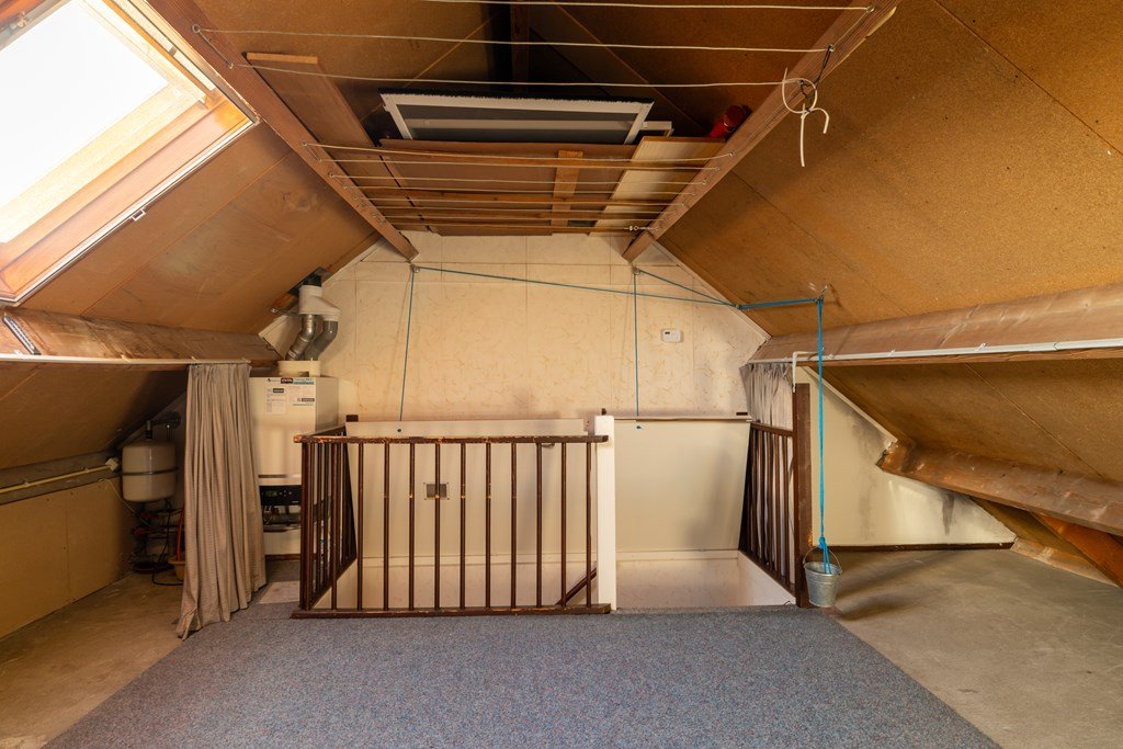 Op de eerste verdieping bevinden zich een overloop, drie slaapkamers en een badkamer voorzien van een badmeubel en een douche. De zolder is bereikbaar via een vaste trap en kan dienen als bergruimte of als extra slaapkamer. Hier bevindt zich ook de cv-ketel (bouwjaar 2010).