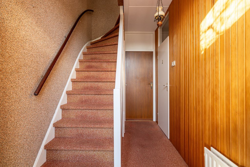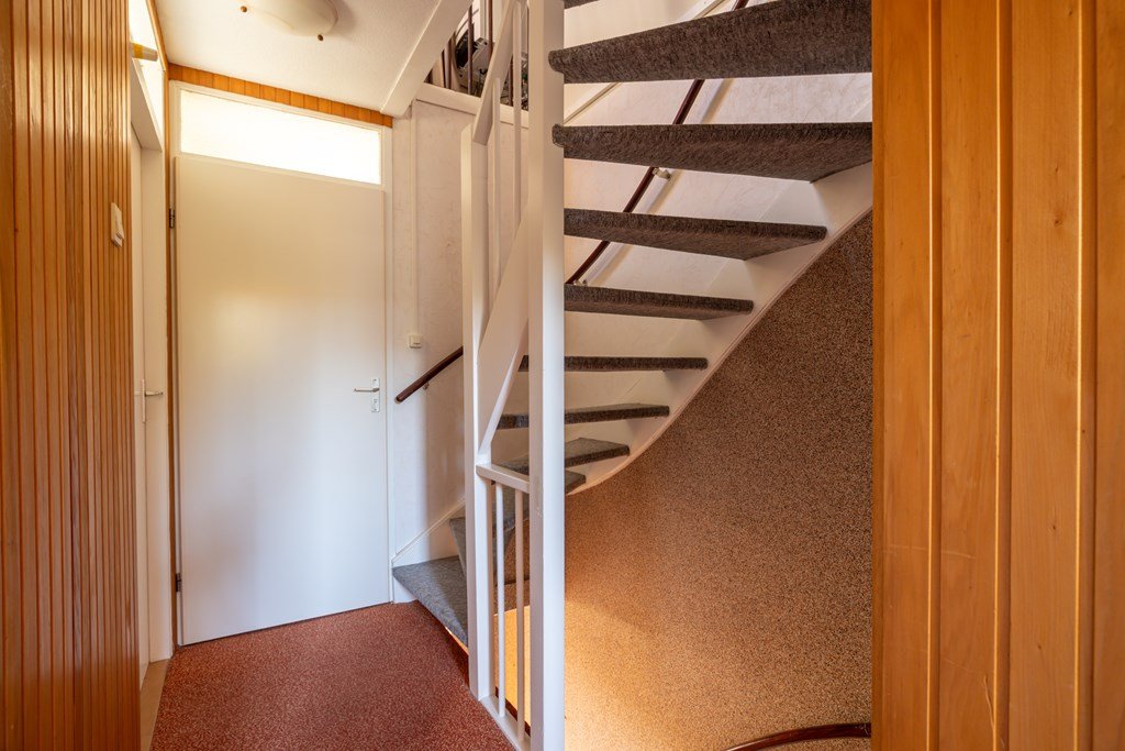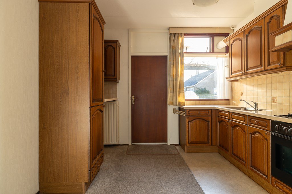 Via de entree komt u in de hal met meterkast, toilet en trapopgang naar de eerste verdieping. Vanuit de hal heeft u toegang tot de woonkamer, die dankzij de ligging prettig licht is en beschikt over een buitendeur naar de tuin. De open keuken sluit aan op de royale bijkeuken, waar zich tevens de aansluitingen voor het witgoed bevinden. Deze ruimte is uitgevoerd met een betonvloer en biedt extra bergruimte.