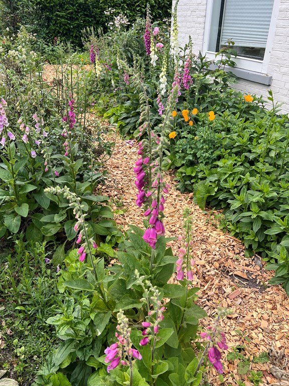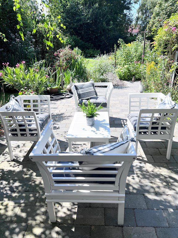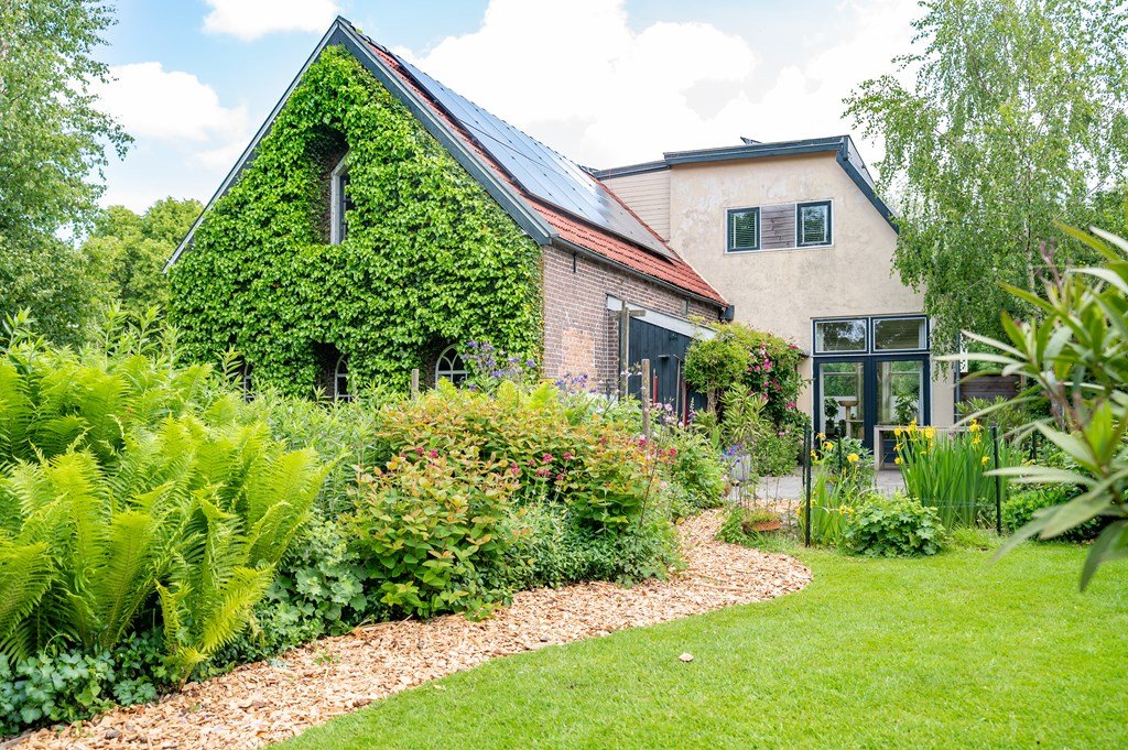 De tuin vormt een waar hoogtepunt. Gelegen op het zuidwesten biedt deze volop zon en privacy. De tuin is met zorg aangelegd en vormt een prachtige mix van bloemen, planten en groen. Tegelijkertijd is er voldoende ruimte voor speeltoestellen, een trampoline of andere voorzieningen voor (klein)kinderen. De tuin is voorzien van meerdere fruitbomen en -struiken. Je vind onderandere de perenboom, appelboom, pruimenboom, rode bes, zwarte bes, kruisbes, rode framboos, witte framboos, japanse wijnbes, braam. Een plek waar jong en oud zich direct thuis zal voelen.