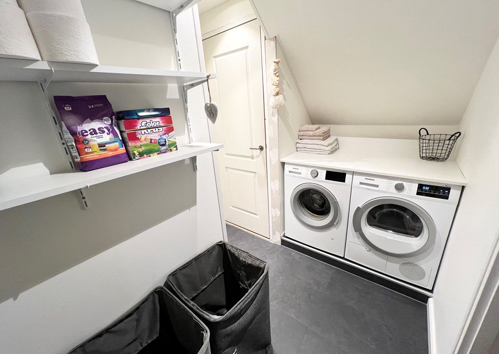 De ruime keuken is van alle gemakken voorzien en vormt een fijne plek voor kookliefhebbers. Hier vindt u onder andere een Quooker, Amerikaanse koelkast, vaatwasser en volop opbergruimte. Praktisch detail is de ruime kast naast de keuken, die voorheen als badkamer in gebruik was.