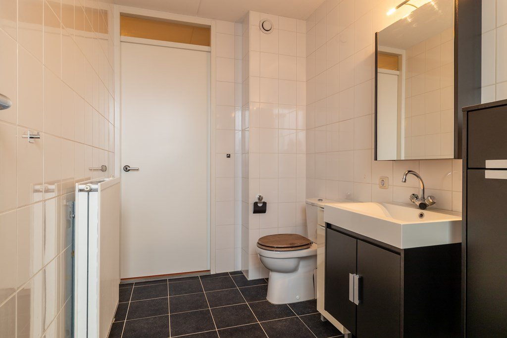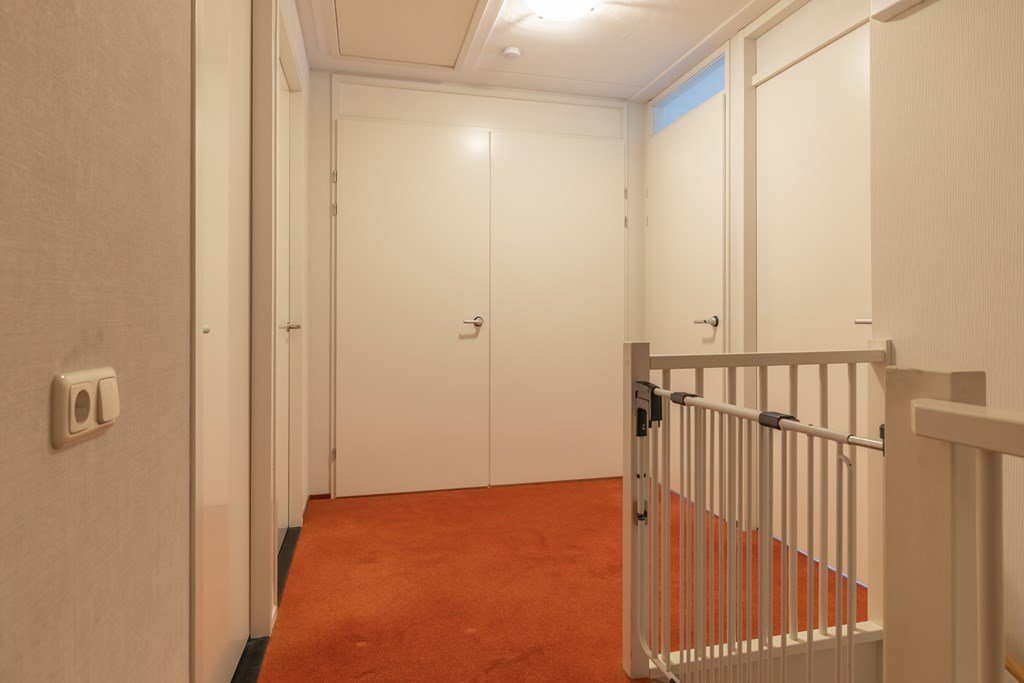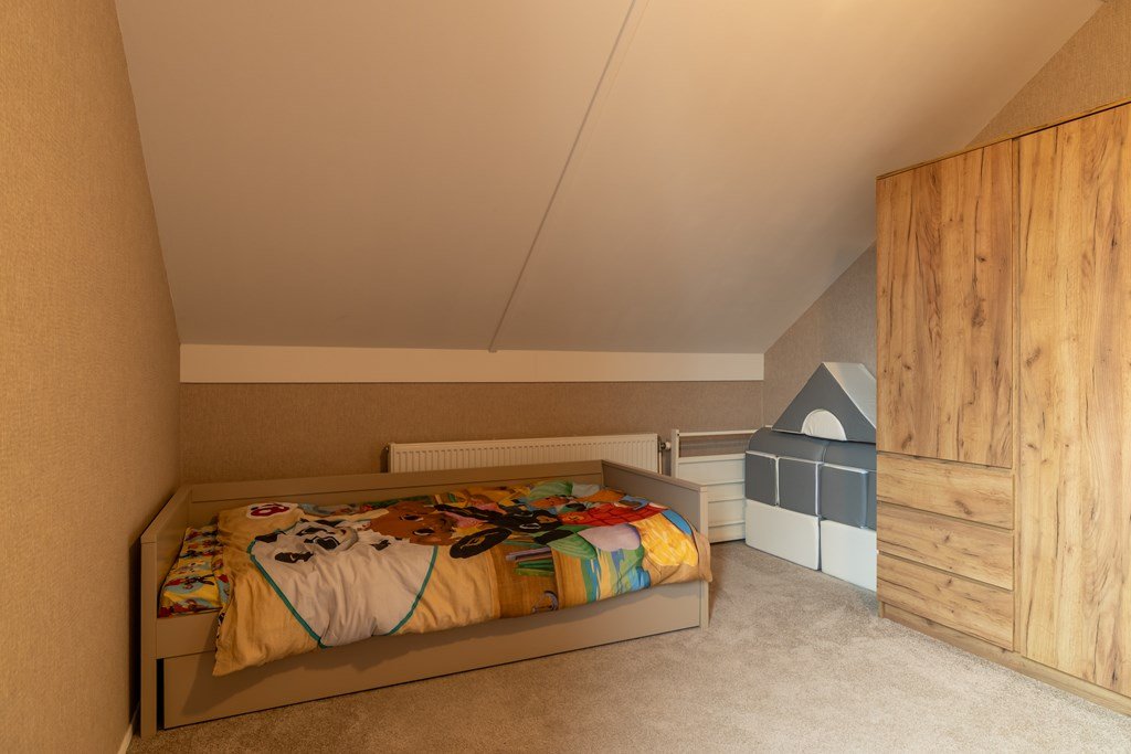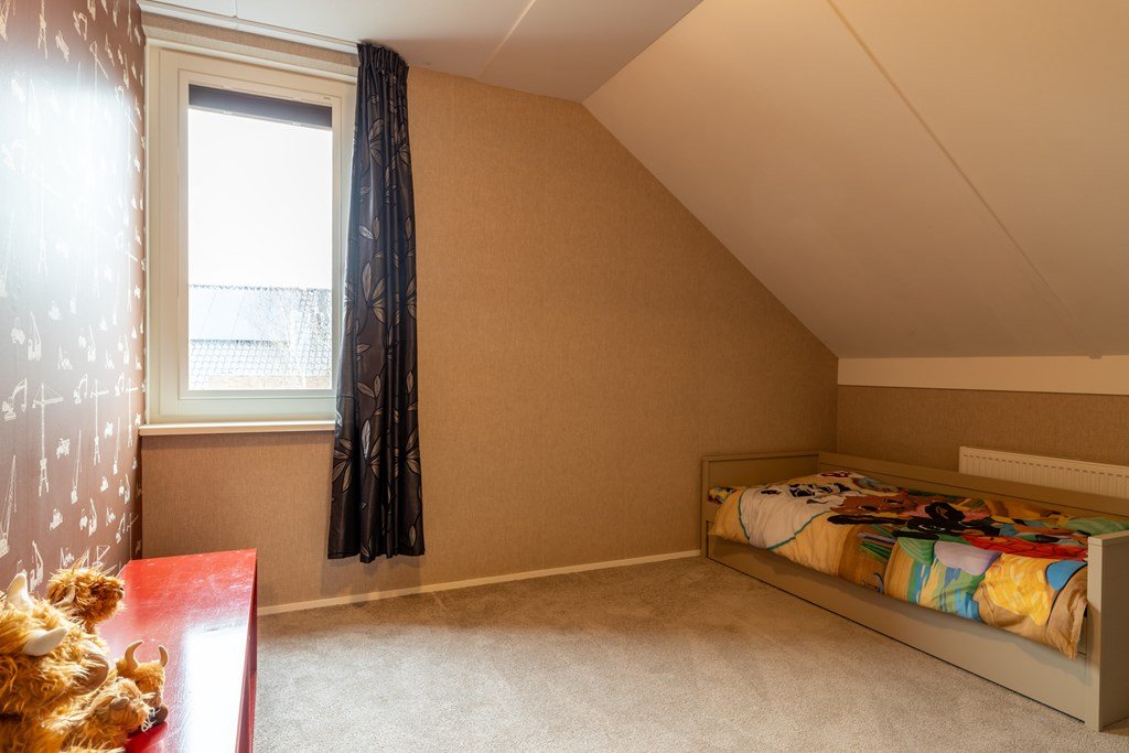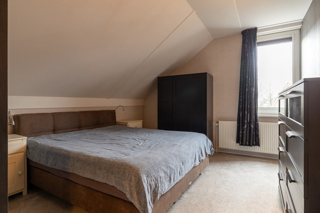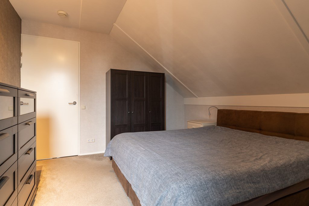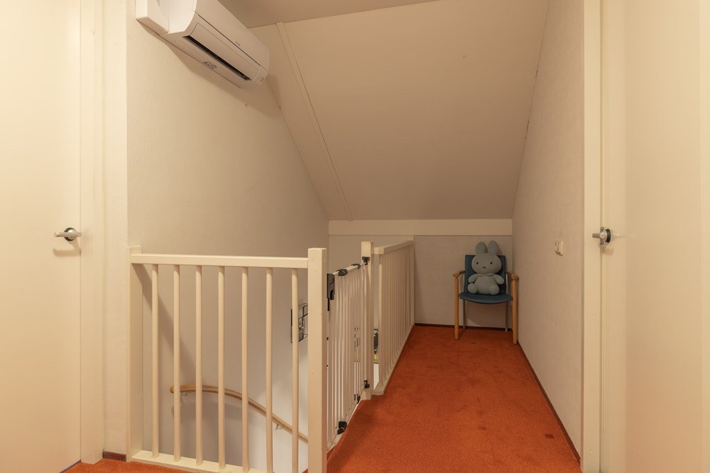 Op de eerste verdieping bevinden zich drie slaapkamers en een badkamer met wastafel en inloopdouche en toilet. De zolder, bereikbaar via een vlizotrap, biedt extra bergruimte.