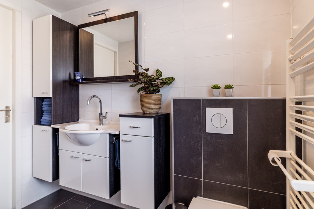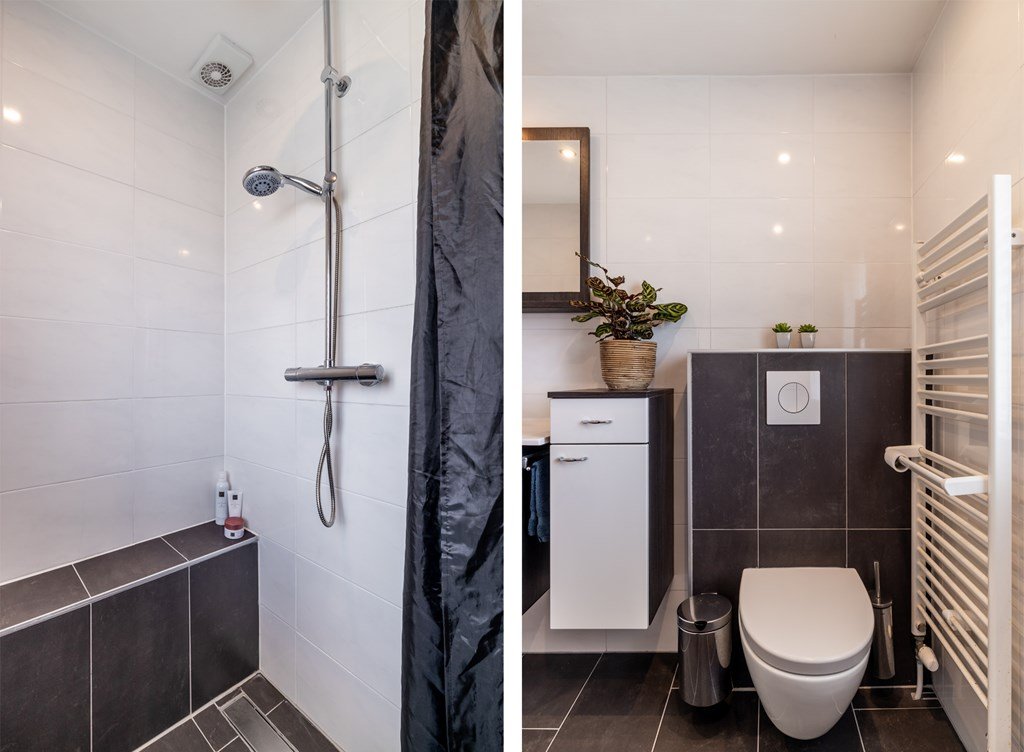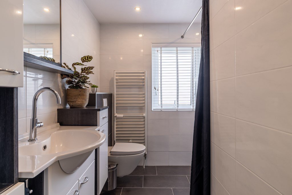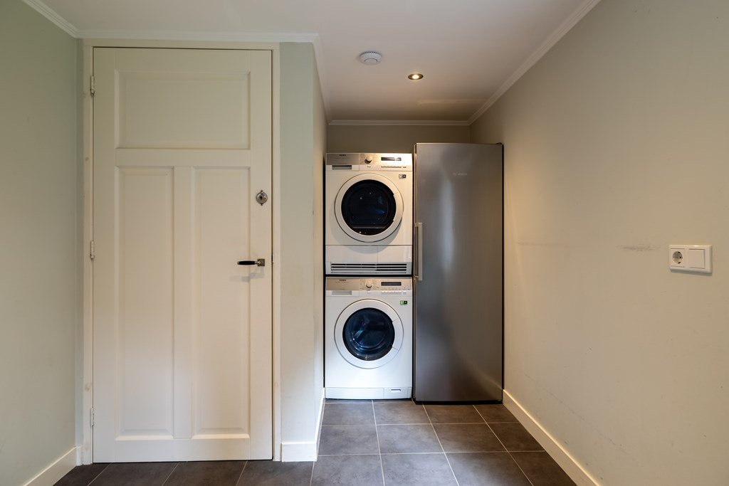 Aangrenzend aan de keuken bevindt zich een ruime bijkeuken met voldoende ruimte voor de wasmachine en droger. Daarnaast vind je hier ook het toilet en de deur naar de achtertuin.