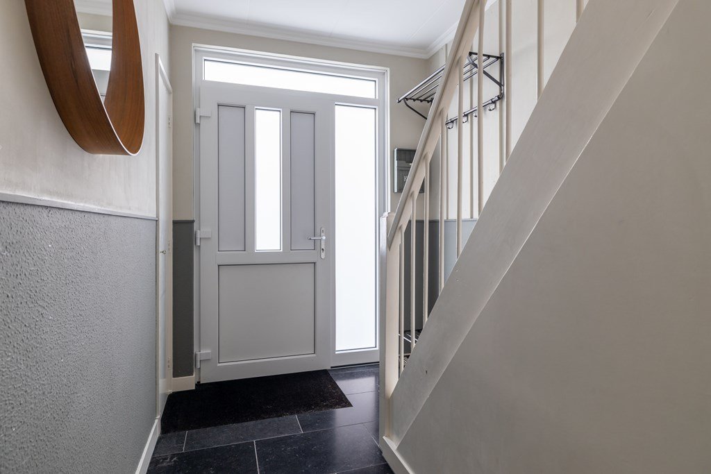 Via de voordeur kom je binnen in de hal, waar zich de kelder, de trapopgang en de toegang tot de woonkamer bevinden. De moderne keuken is voorzien van een gaskookplaat, oven en vaatwasser, en biedt volop opbergruimte.