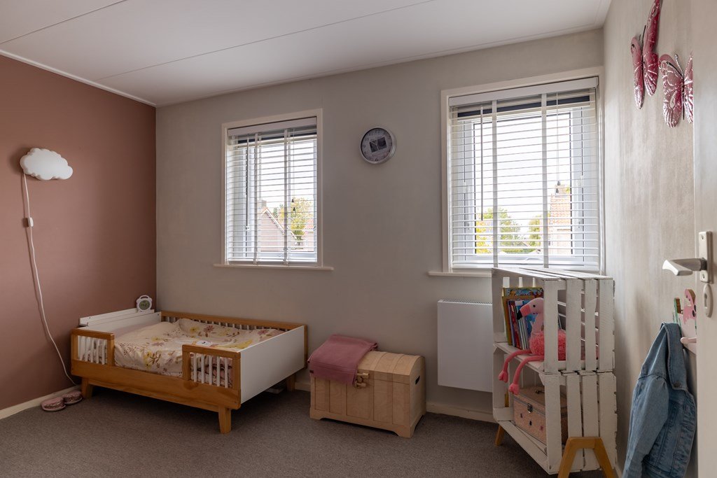 Op de eerste verdieping vind je drie slaapkamers en een moderne badkamer met inloopdouche, toilet en wastafel. Vanaf de overloop is via een vlizotrap de zolder bereikbaar.
