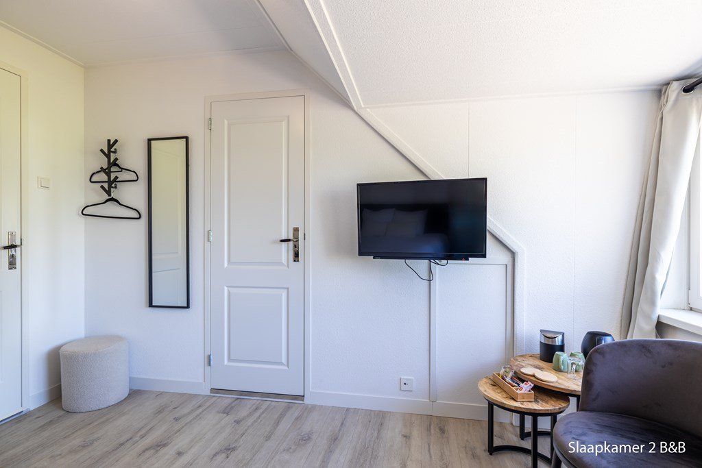 Het woongedeelte is slim ingedeeld met op de begane grond een lichte woonkamer, een moderne keuken en een ruime slaapkamer. Vanuit de woonkamer geniet u van een weids uitzicht over de groene landerijen. In de hal vindt u een badkamer met ligbad, douche en wastafel, een separaat toilet en de doorgang naar het B&B-gedeelte.