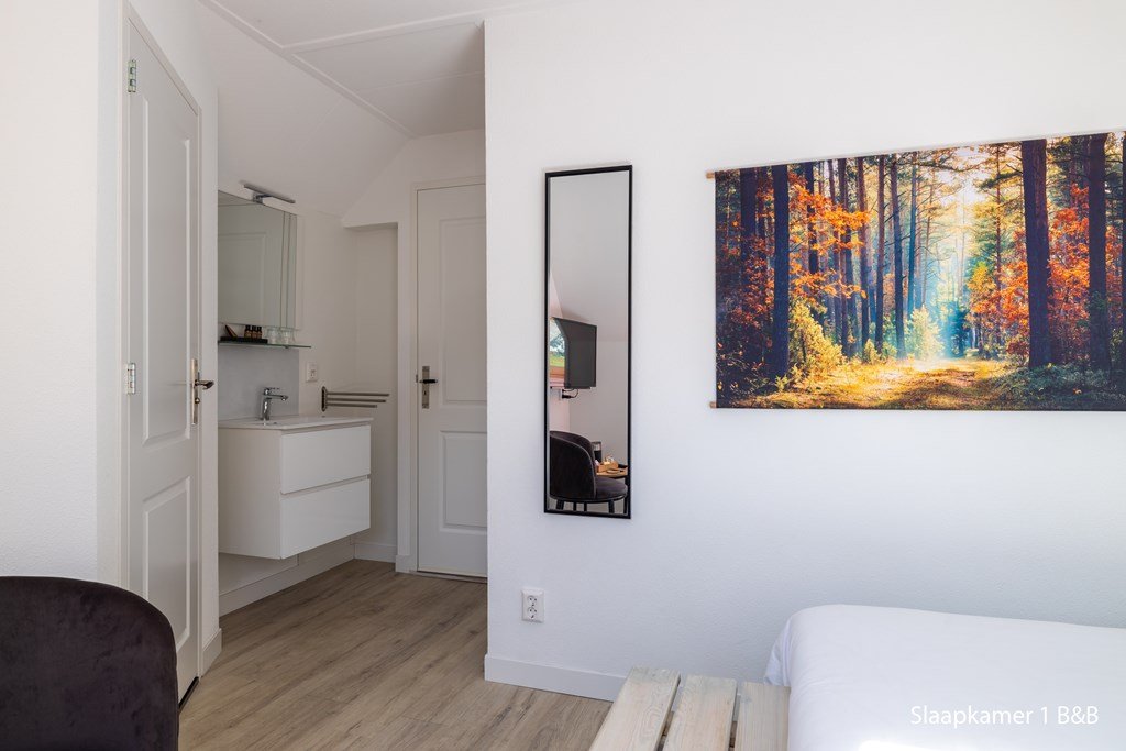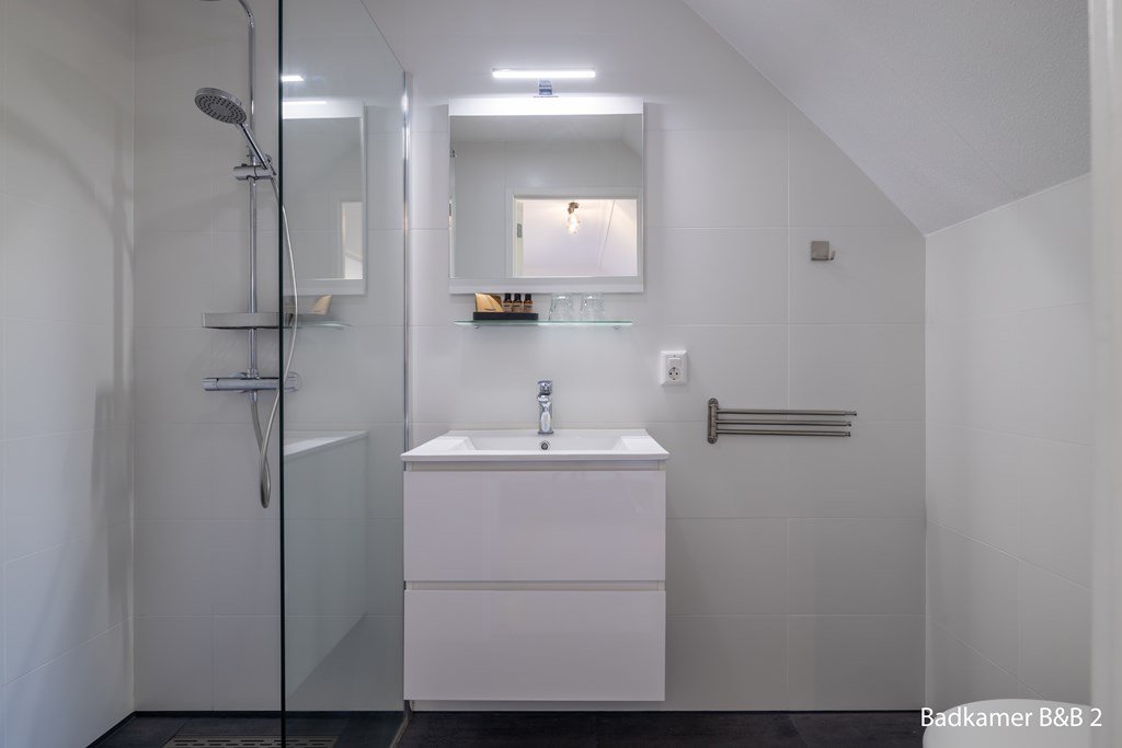 De woning beschikt over een professioneel ingerichte B&B met drie gastenkamers, elk voorzien van een eigen badkamer. Op de begane grond bevindt zich een ruime ontvangst- en ontbijtruimte met toegang tot de tuin, evenals een grote voorraadkast. Het woongedeelte is volledig afsluitbaar en afzonderlijk van de B&B, waardoor uw privacy altijd gewaarborgd blijft.