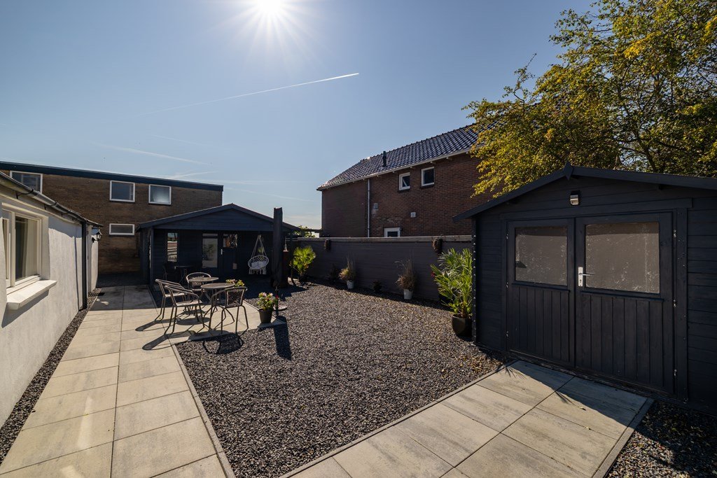 De tuin is ruim en onderhoudsvriendelijk aangelegd, waardoor u volop kunt genieten zonder veel werk. De achtertuin ligt op het zuidwesten – ideaal voor zonliefhebbers die graag tot in de avonduren buiten zitten. Naast de woning bevindt zich een royale oprit met voldoende ruimte om meerdere voertuigen te parkeren. Ook is er een ruime berging, perfect voor de handige klusser of voor extra opslag.