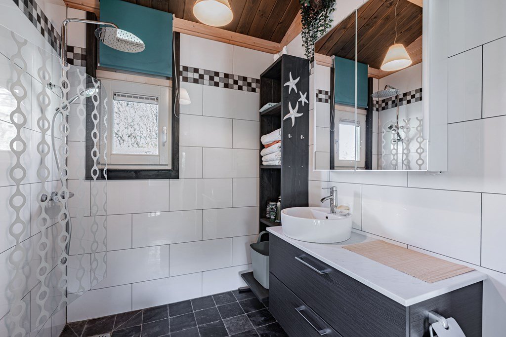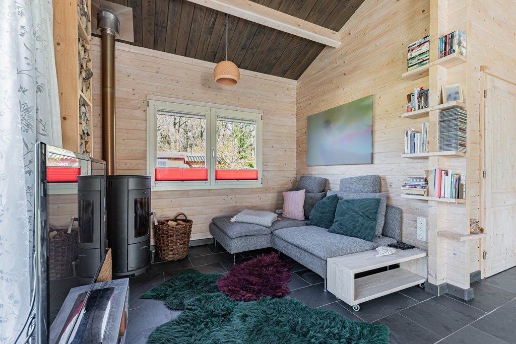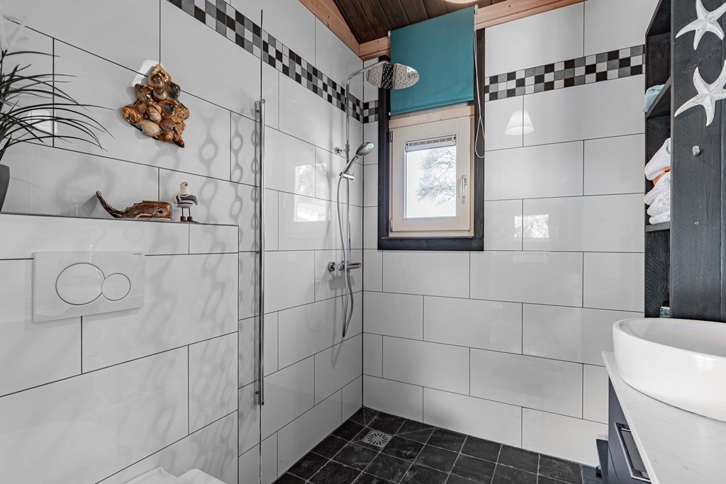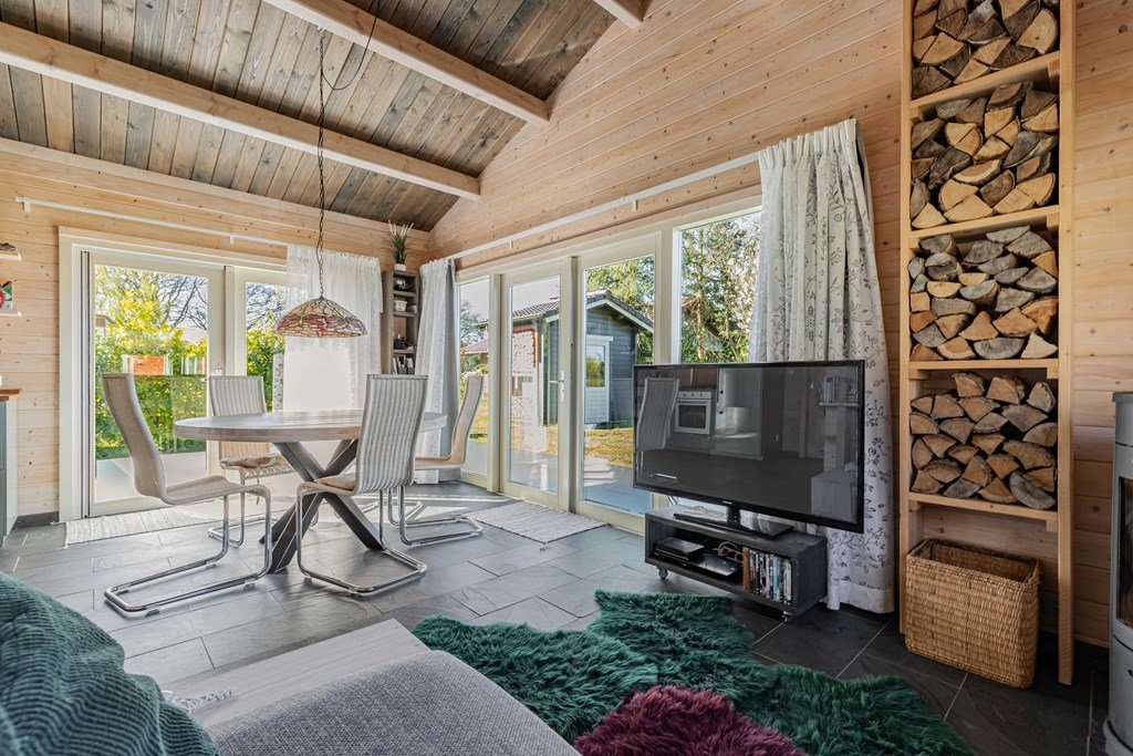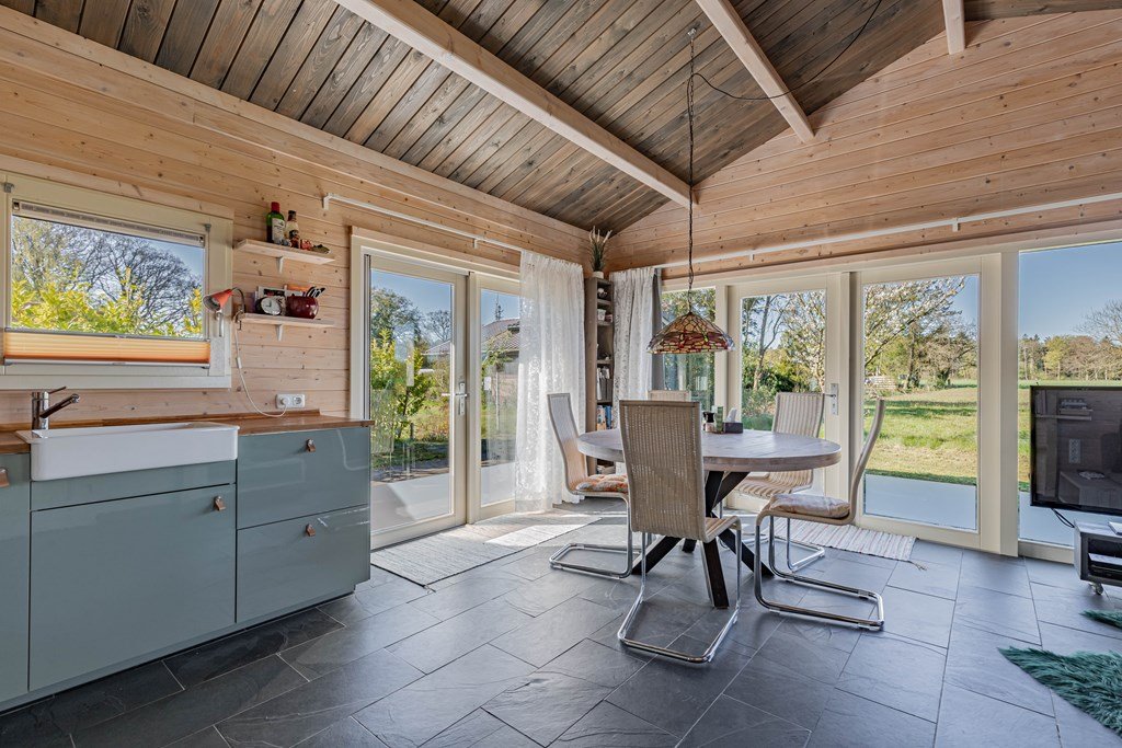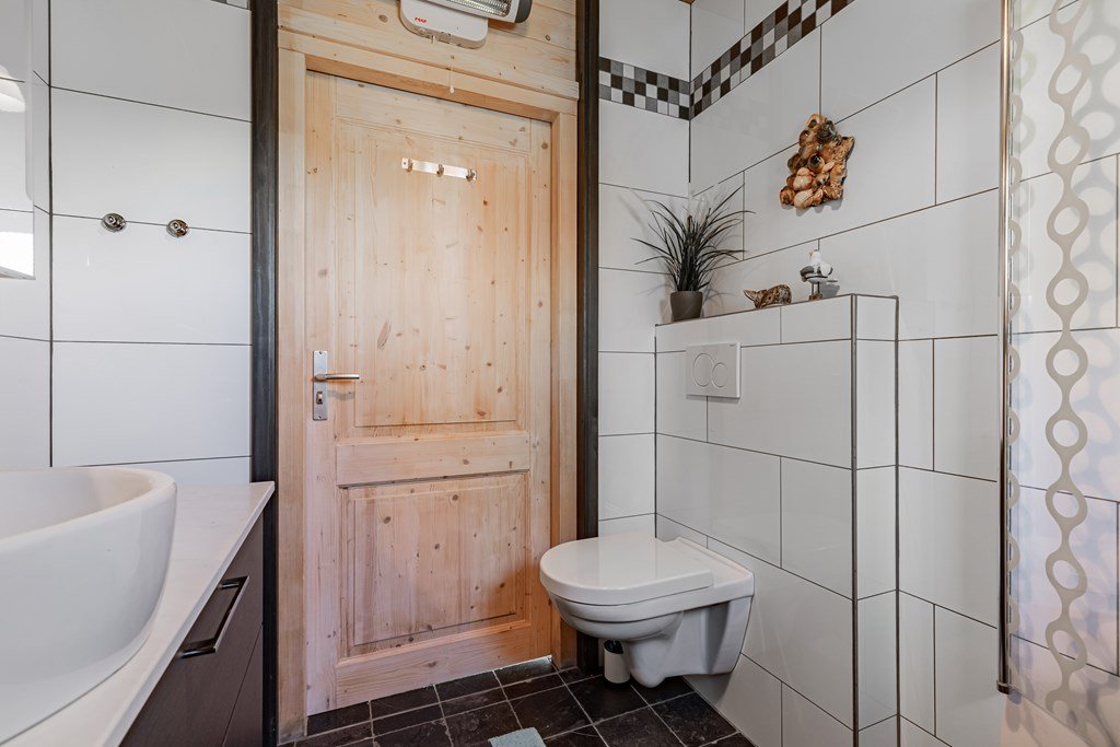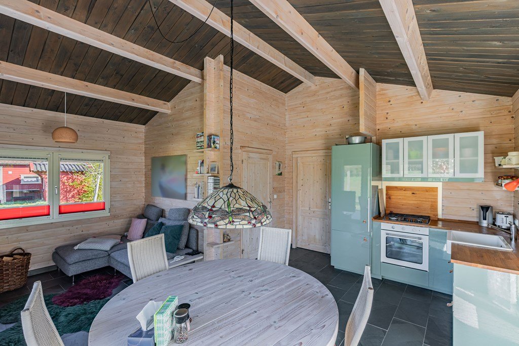 Binnen treft u een lichte woonkamer met open keuken. De houtkachel en de vloerverwarming zorgen samen voor een comfortabel en aangenaam binnenklimaat.
