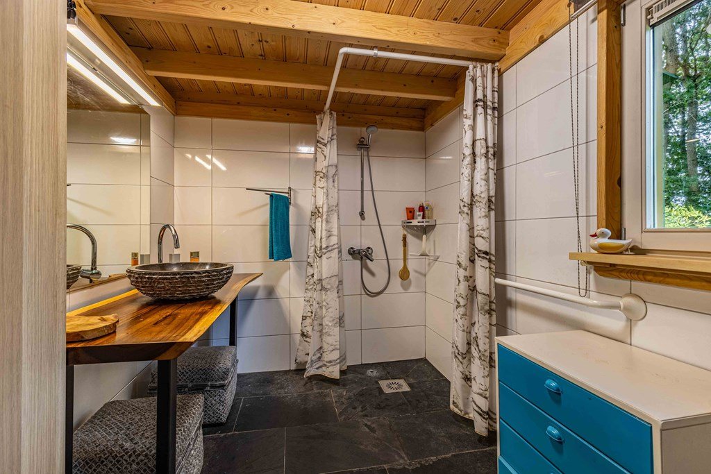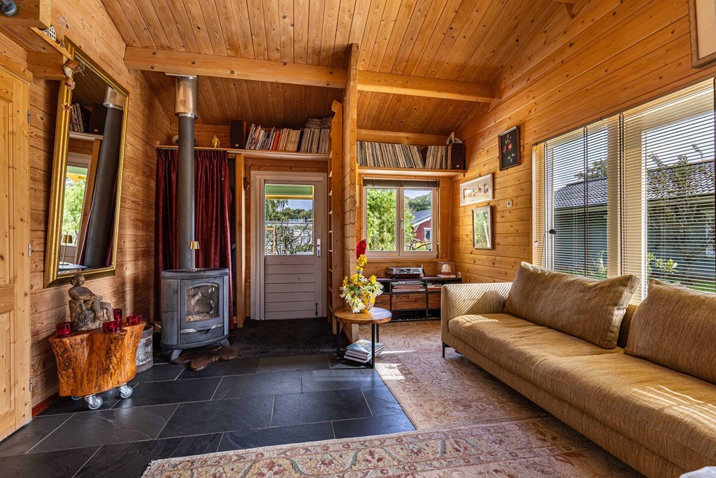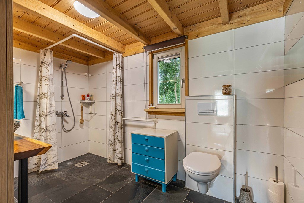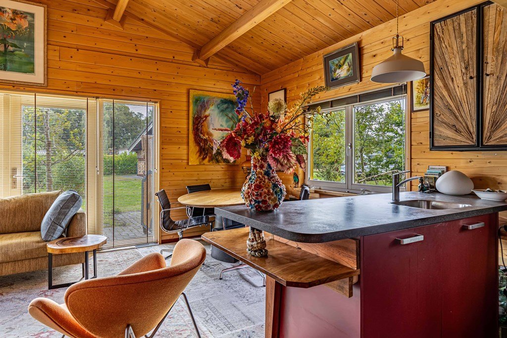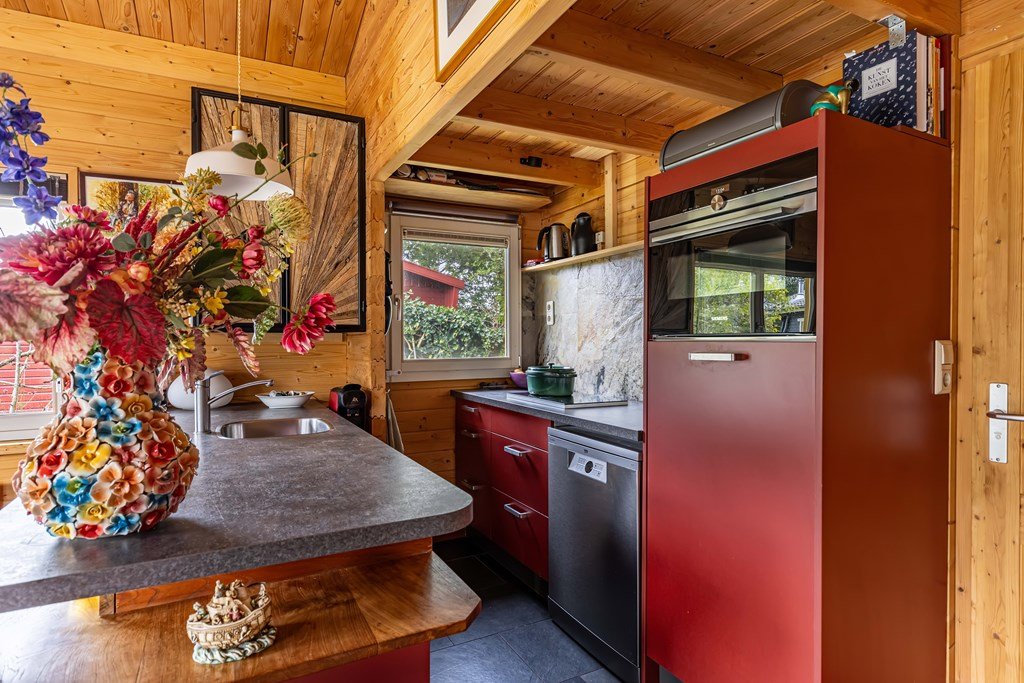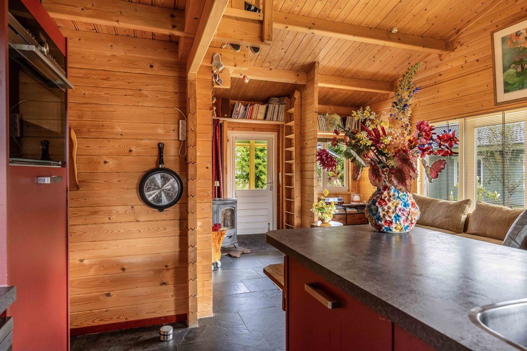 Binnen treft u een lichte woonkamer met open keuken, waar de speksteen houtkachel en vloerverwarming direct zorgen voor warmte en sfeer. Op de begane grond vindt u tevens een slaapkamer en een badkamer met inloopdouche, wastafel en toilet. De verdieping biedt een royale zolder met volop mogelijkheden, bijvoorbeeld als logeer- of hobbyruimte.