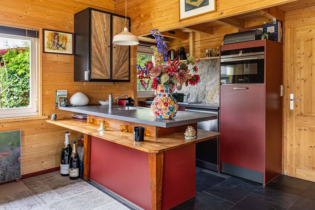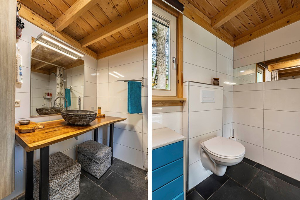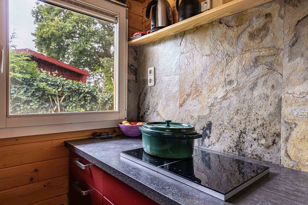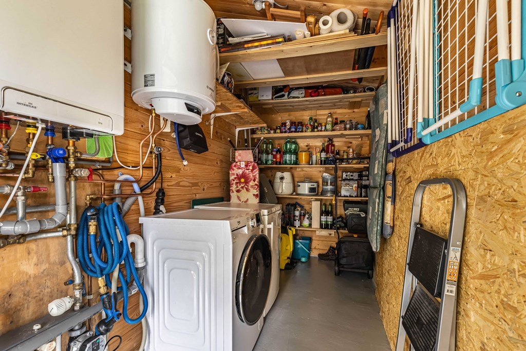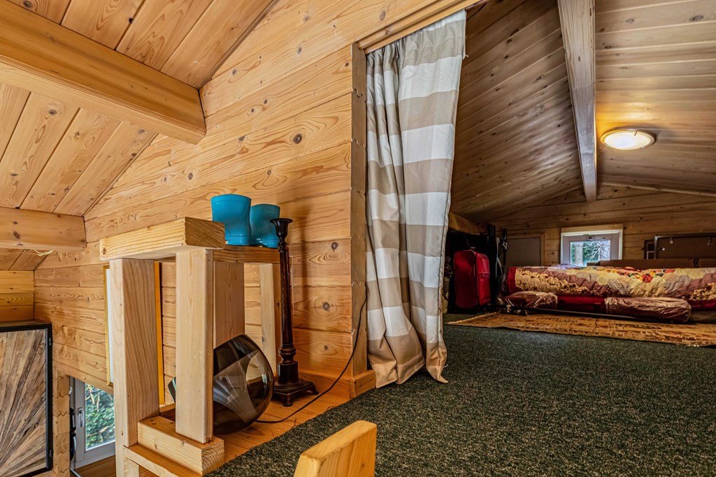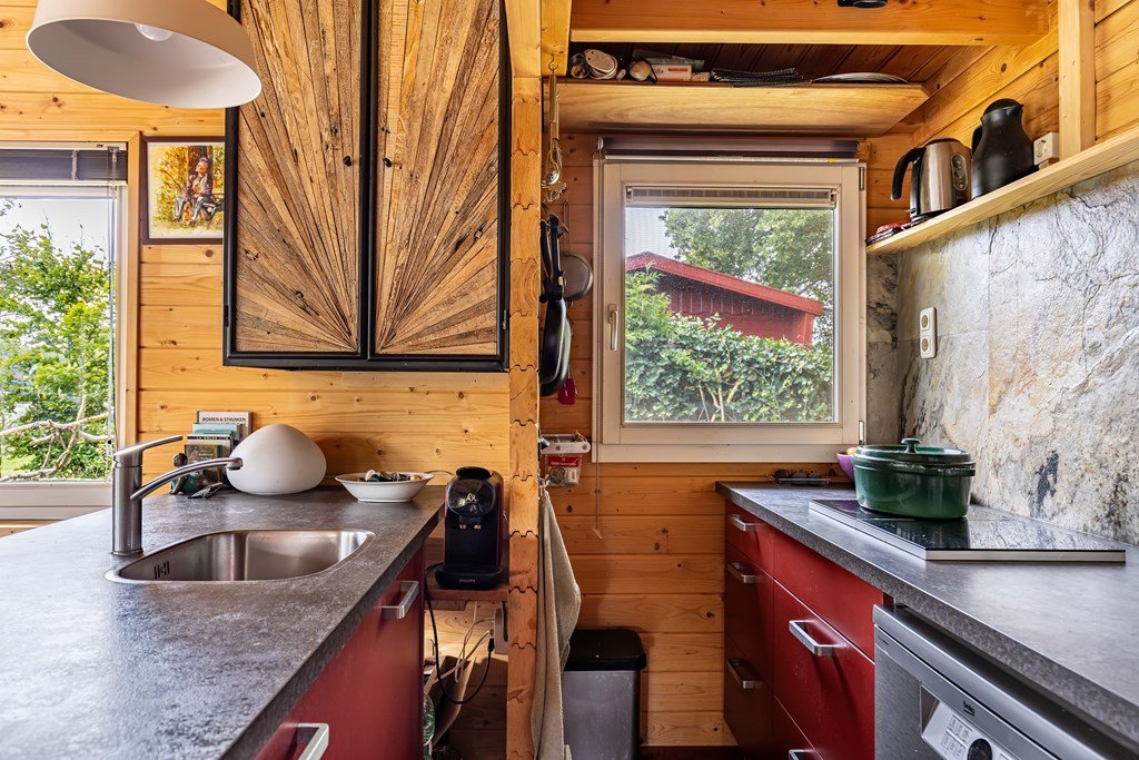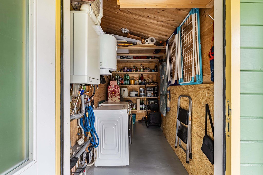 Binnen treft u een lichte woonkamer met open keuken, waar de speksteen houtkachel en vloerverwarming direct zorgen voor warmte en sfeer. Op de begane grond vindt u tevens een slaapkamer en een badkamer met inloopdouche, wastafel en toilet. De verdieping biedt een royale zolder met volop mogelijkheden, bijvoorbeeld als logeer- of hobbyruimte.