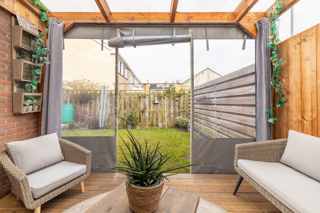 De tuin is gelegen op het noordoosten en beschikt over een fijne overkapping waar u al vroeg in het seizoen van het buitenleven kunt genieten. Daarnaast is er een vrijstaande houten berging voor extra opslag.