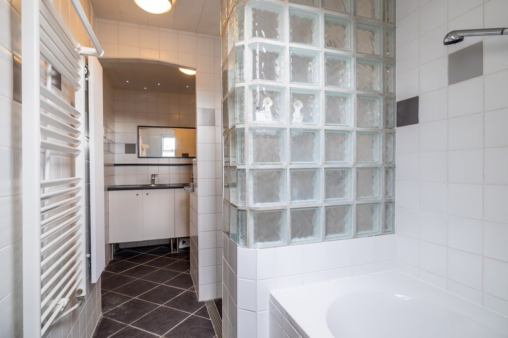 Op de eerste verdieping bevinden zich meerdere slaapkamers en een complete badkamer. De badkamer is ruim opgezet en beschikt over een dubbele wastafel, toilet, inloopdouche en ligbad – comfortabel en compleet voor het hele gezin.