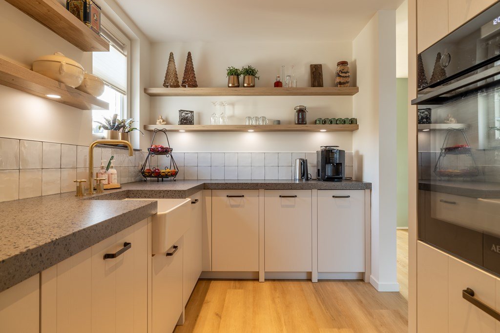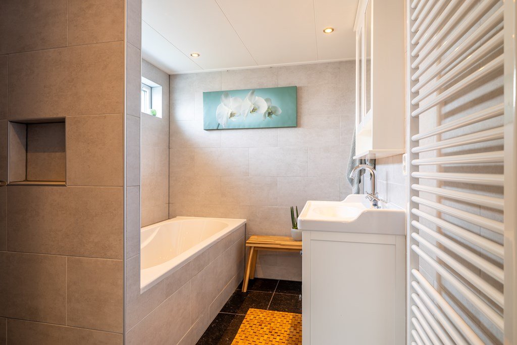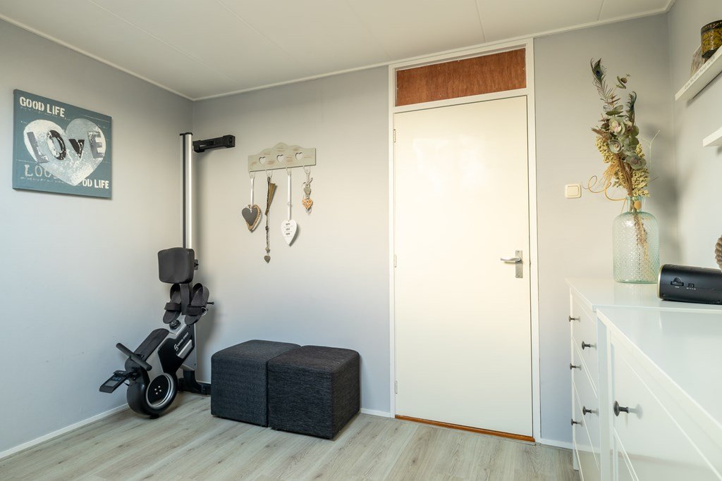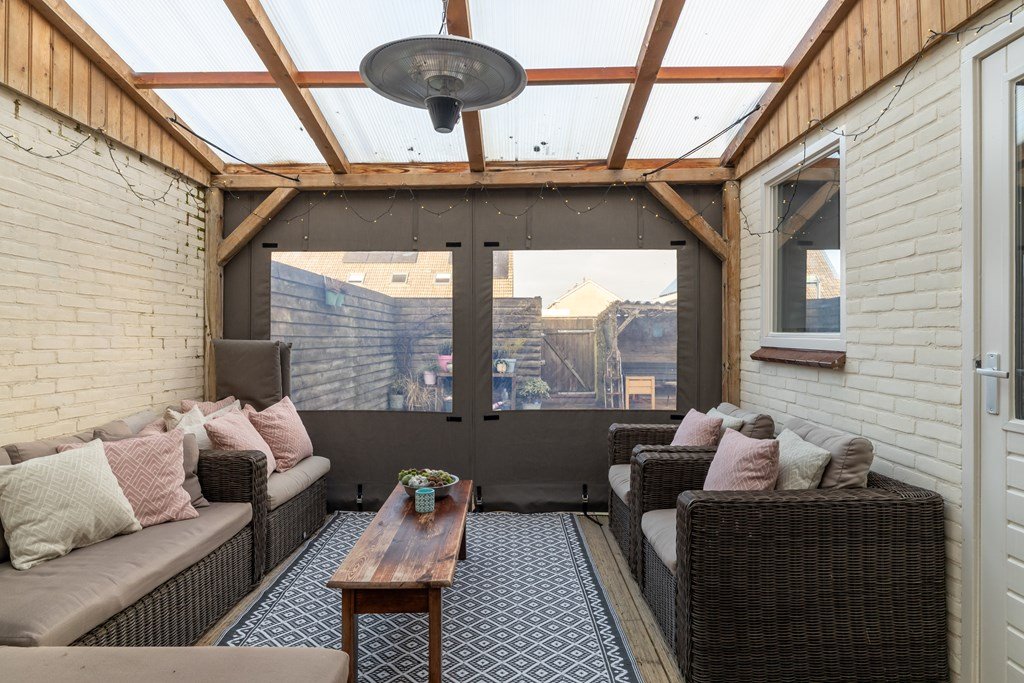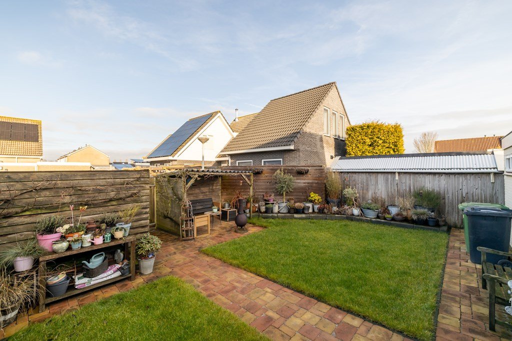 De tuin is praktisch ingericht en biedt volop privacy. Onder de overkapping is het heerlijk beschut zitten, ongeacht het seizoen. Daarnaast beschikt het perceel over een ruime berging, ideaal voor fietsen, gereedschap of hobby’s. Parkeren kan gemakkelijk op de eigen oprit.