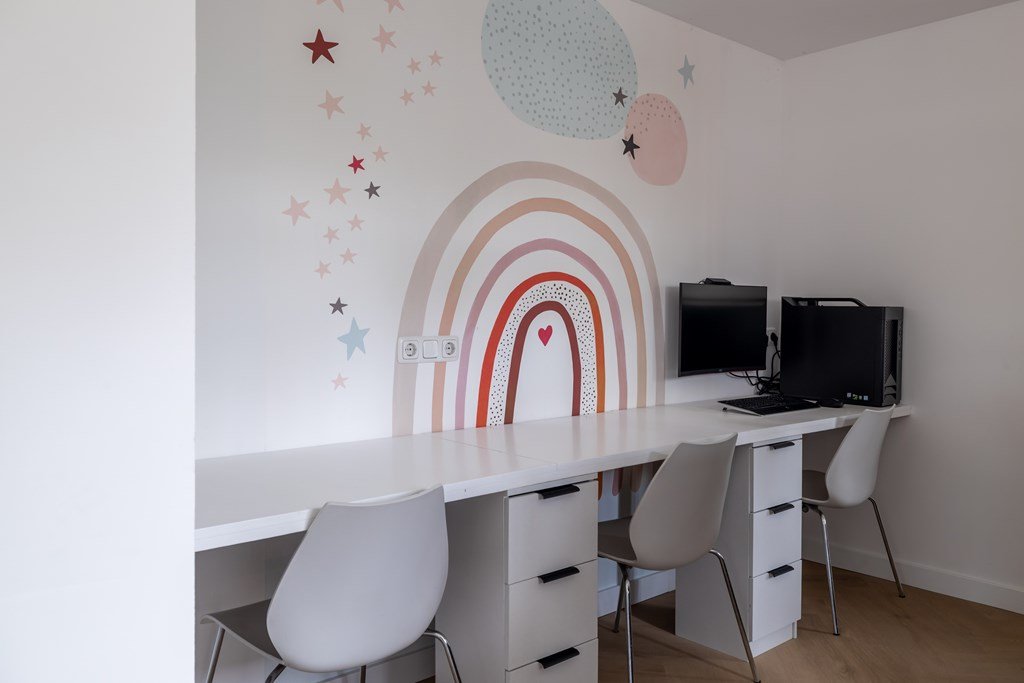 De lichte, open living is een heerlijke plek om te ontspannen. Dankzij de grote ramen geniet je hier van volop lichtinval. De moderne keuken met kookeiland vormt het hart van de woning: perfect voor wie graag kookt of gezellig samen wil zijn. Aangrenzend bevindt zich een extra ruimte die ideaal is als speelkamer, werkkamer of hobbyruimte.
