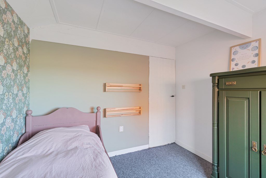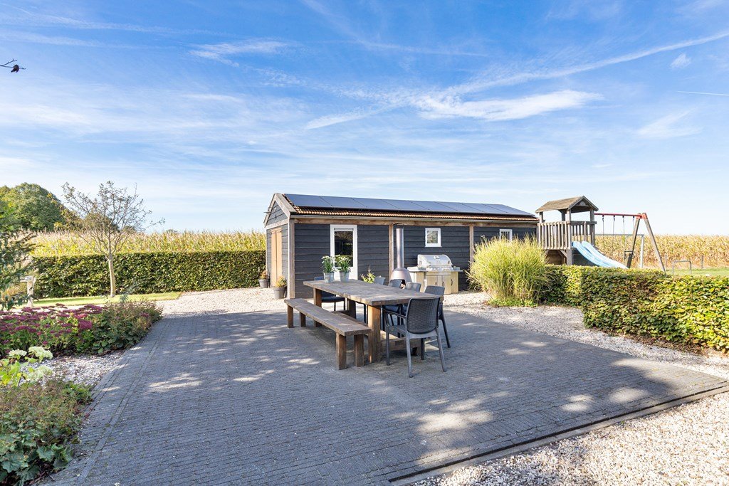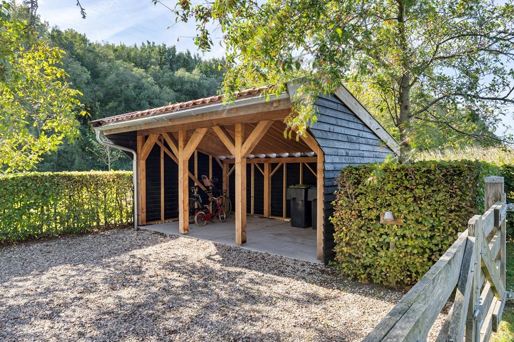 Buiten beschikt de woning over een ruime houten garage, perfect voor het stallen van fietsen, tuinspullen of voor de handige klusser. Aan de voorzijde van het perceel staat bovendien een kapschuur, die extra bergruimte of overdekte parkeergelegenheid biedt. Op de oprit is daarnaast voldoende plaats voor meerdere voertuigen. De woning is voorzien van 8 zonnepanelen, heeft houten kozijnen en beschikt over energielabel D.