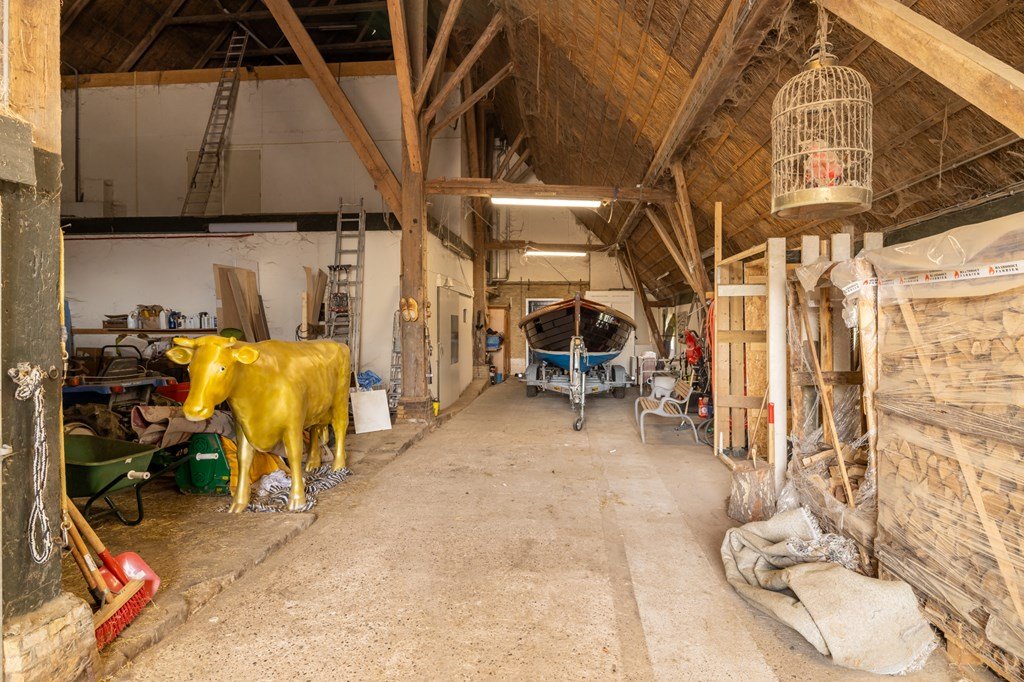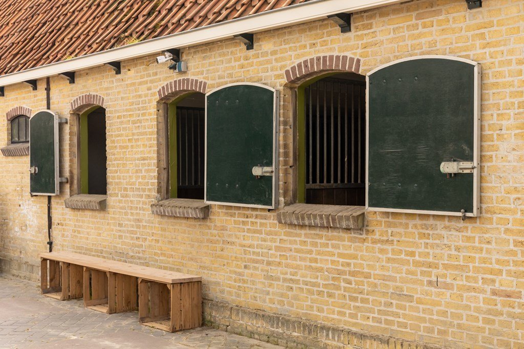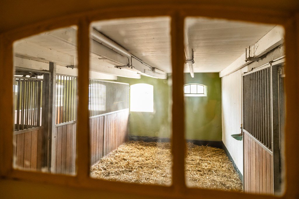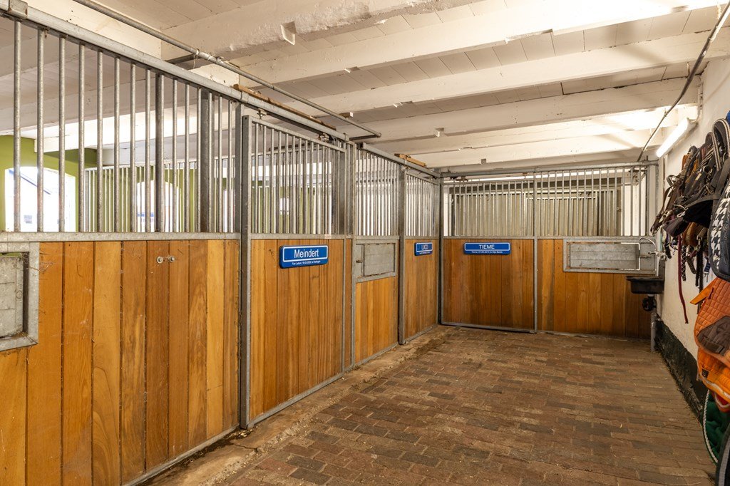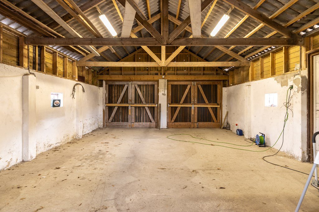Via de bijkeuken bereikt u de grote schuur met vier paardenboxen, een verwarmde zadelkamer, technische ruimte en volop opslagmogelijkheden.