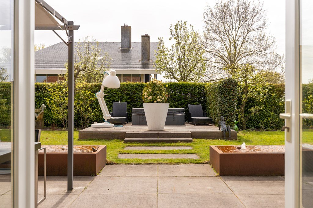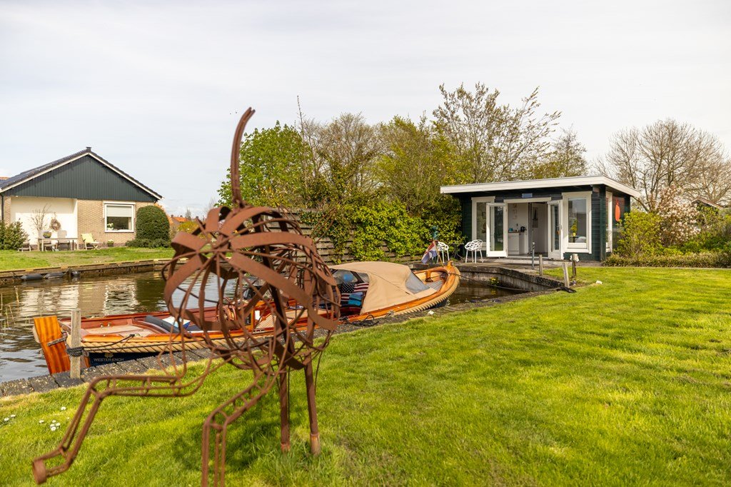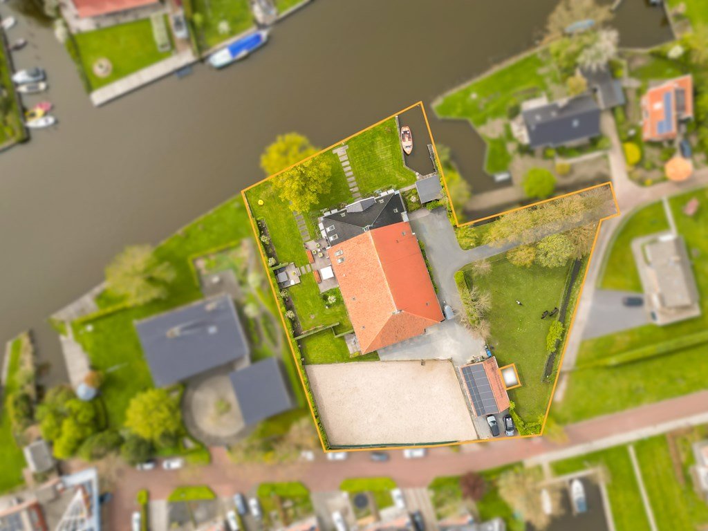 Het geheel staat op een royaal perceel van maar liefst 4.240 m² en beschikt over circa 40 meter eigen oever. De aanwezige insteekhaven biedt ruimte aan meerdere boten. De fraai aangelegde tuin met diverse fruitbomen, een gedraineerde paardenbak en een vrijstaande garage met plaats voor vier auto’s maken het buitenleven hier compleet.