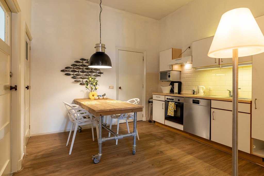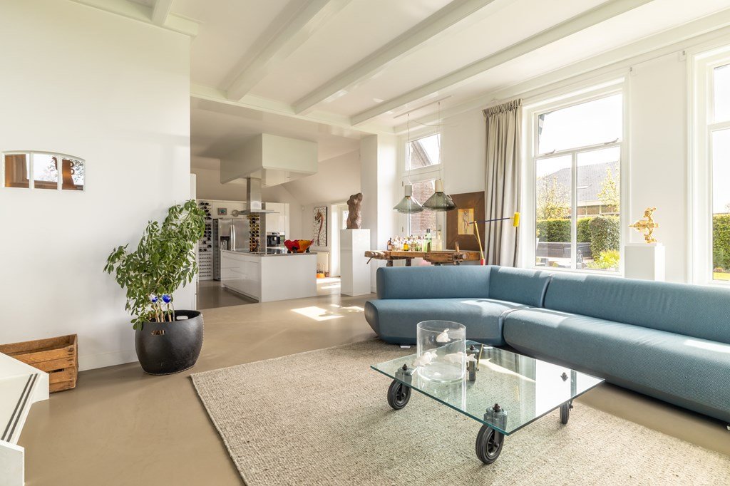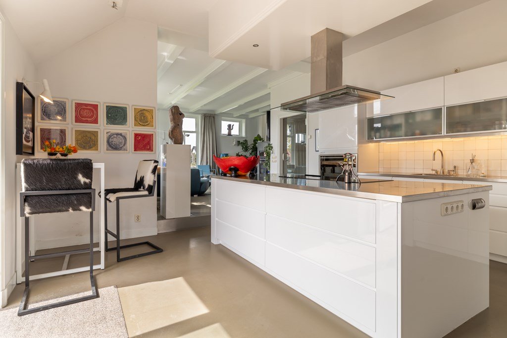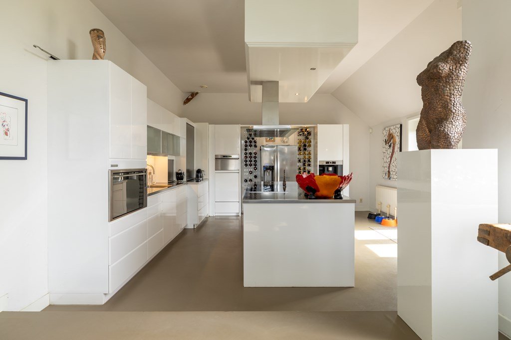 De aansluitende keuken is royaal opgezet en voorzien van alle denkbare inbouwapparatuur – een ideale plek voor kookliefhebbers.