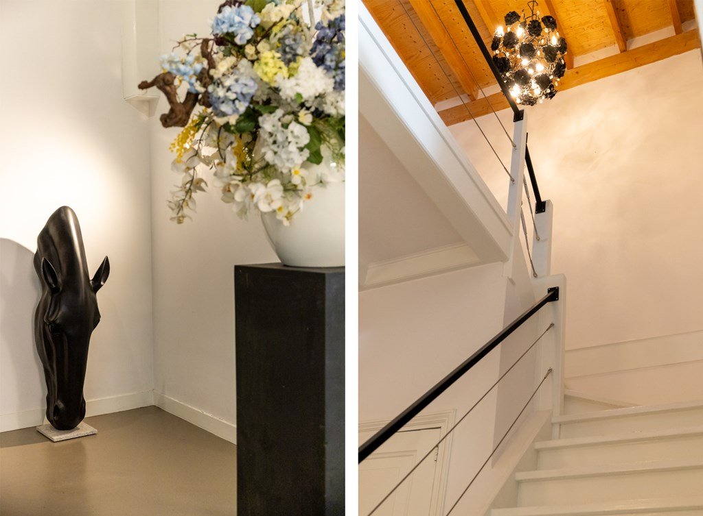 Via de entree aan de Koetshusleane bereikt u de ruime ontvangsthal met toilet. Bij binnenkomst in de living vallen direct de ruimte, het licht en het prachtige uitzicht over water en tuin op. Grote raampartijen zorgen voor een optimale beleving van de omgeving. De combinatie van vloerverwarming en een speksteenkachel zorgt voor een aangenaam binnenklimaat, het hele jaar door.